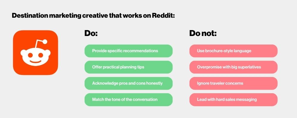 Creative that succeeds on Reddit looks very different from traditional destination marketing.